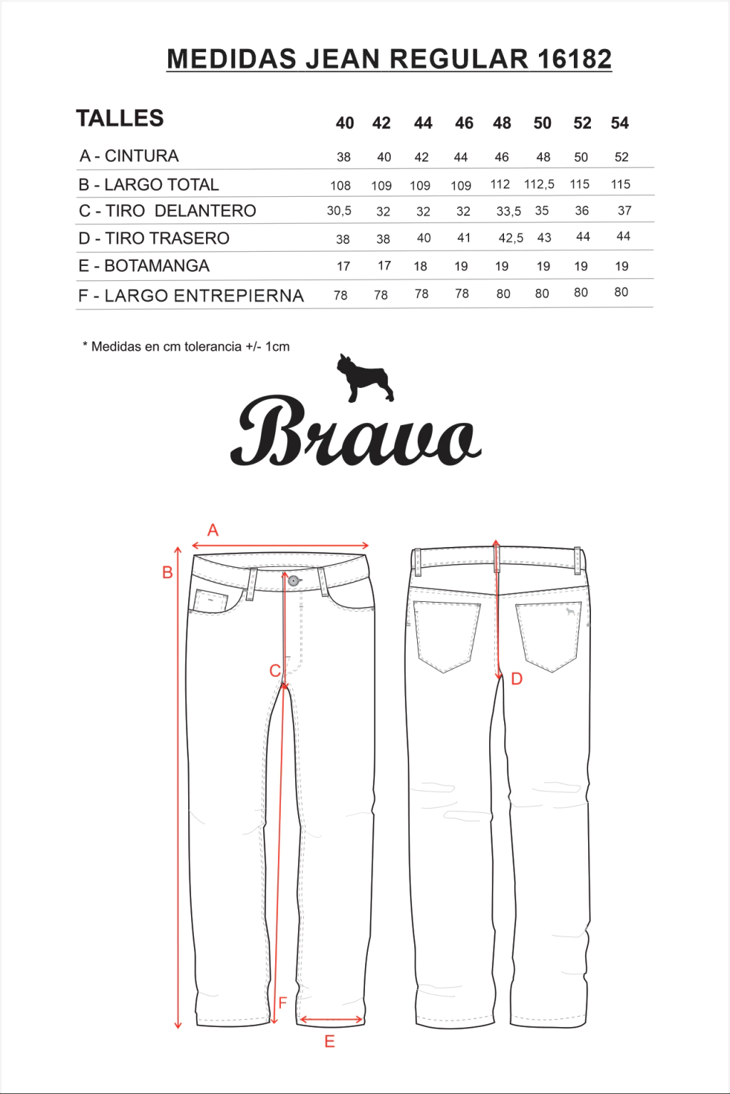 Disponible en talles 40 al 54 según stock.
