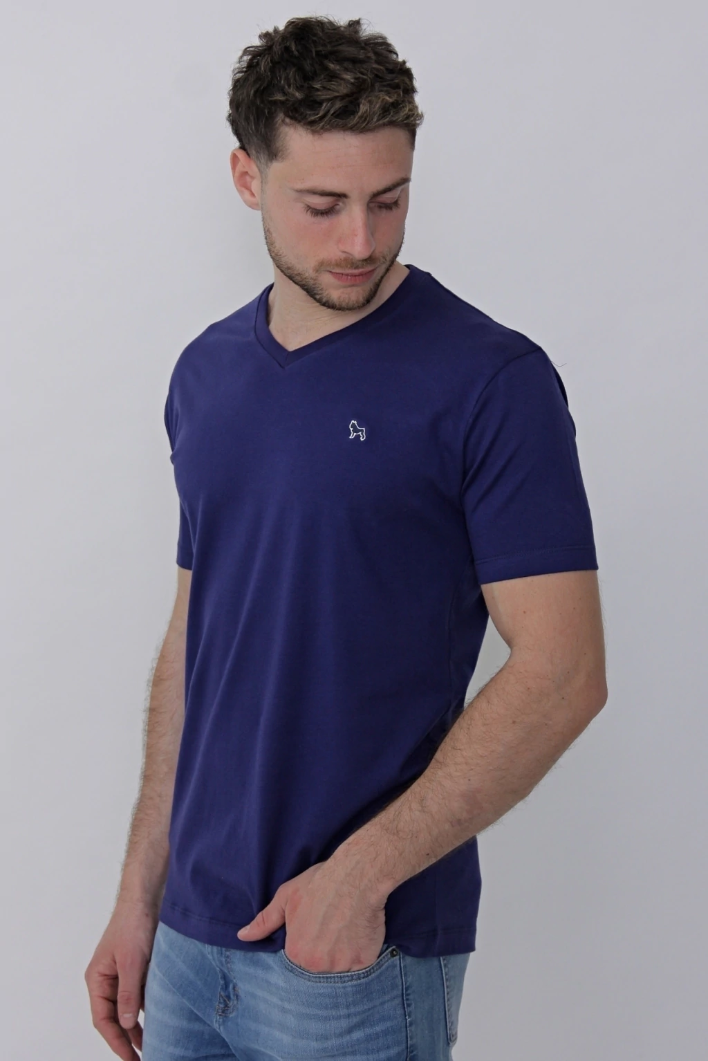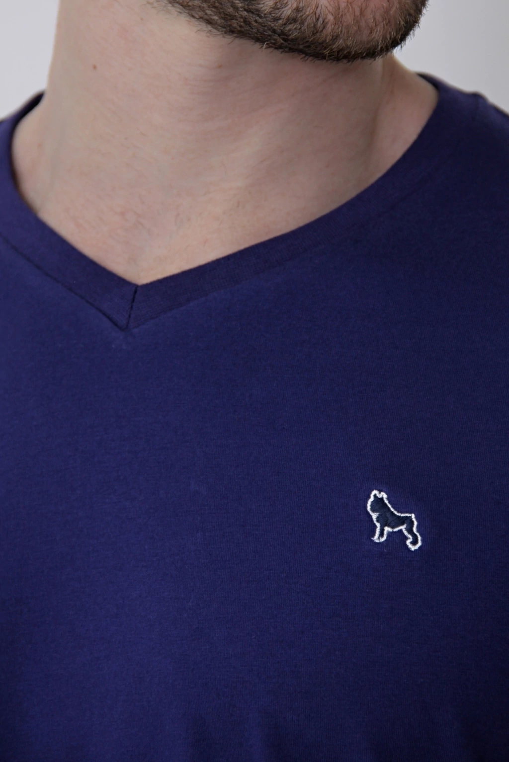 Su diseño es de manga corta, escote en V y cuenta con un logo bordado en el frente, en la parte superior izquierda.